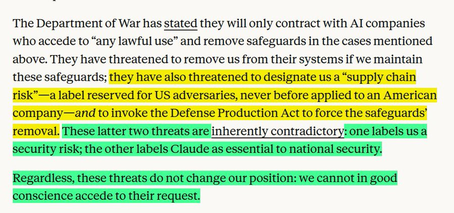 🗞️ Anthropic stood their ground and told the United States Department of Defense a strong “NO”