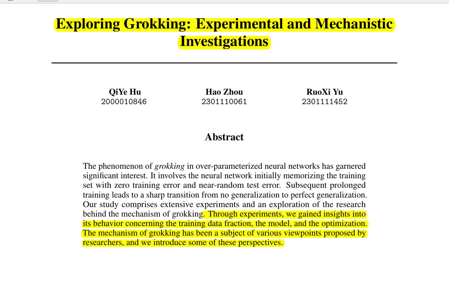 "Exploring Grokking: Experimental and Mechanistic Investigations"