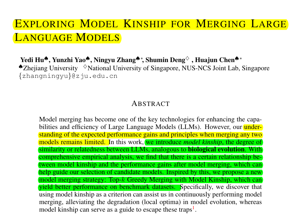 🔍 Model kinship is a metric designed to assess the degree of similarity or relatedness between LLMs based on their "genetic" information, which refers to the changes in weights during model evolution.