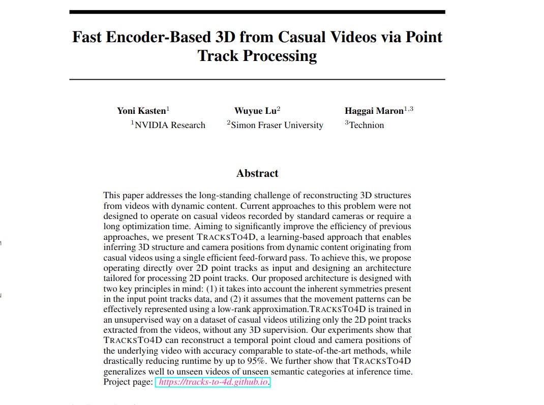 "Fast Encoder-Based 3D from Casual Videos via Point Track Processing"