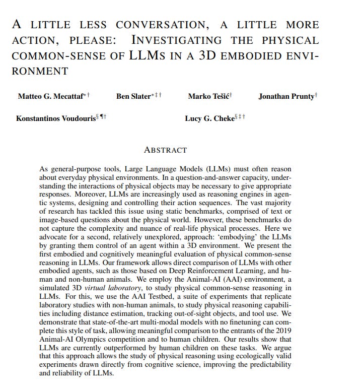 This is yet another one, that says AI models trained on linguistic signals fail when the task requires embodied physical common sense in a world with real constraints.