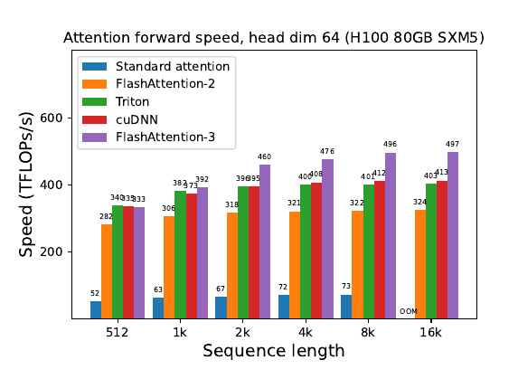 👨🔧 Now this new Flash Attention-3 is optimized for H100, 75% utilization of H100 theoretical max FLOPS, while FlashAttention-2 could achieve up to 70% theoretical max FLOPS on Ampere (A100) GPUs, and the FA-2 did not take advantage of new features on Hopper GPUs to maximize performance.