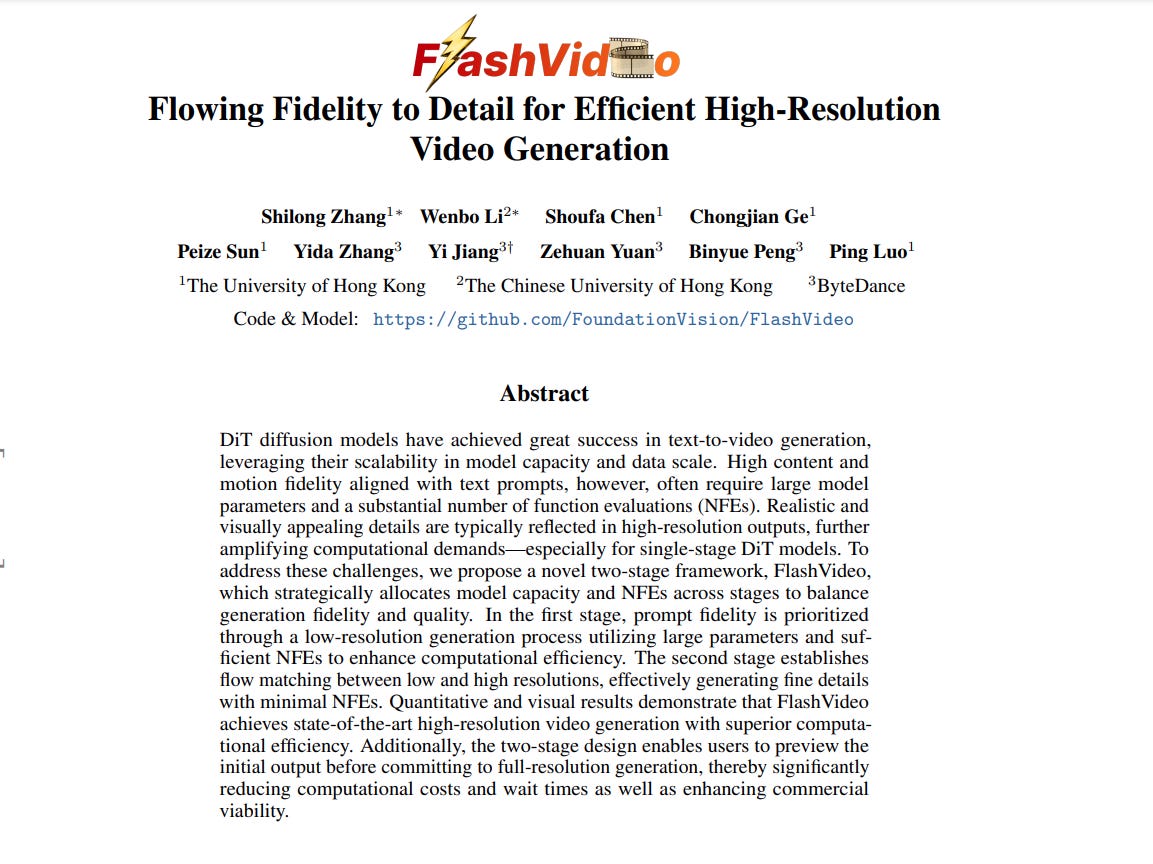 This paper introduces FlashVideo, a two-stage framework. It efficiently generates high-resolution videos by decoupling prompt fidelity and visual quality optimization.