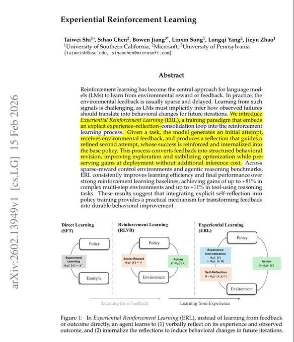 🗞️ New paper shows how LLMs can learn like human, with experience, reflect, and then learn.