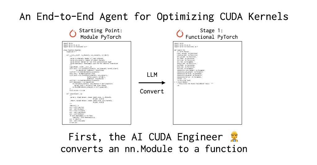 → The AI CUDA Engineer translates PyTorch code into optimized CUDA kernels, significantly improving execution speed.