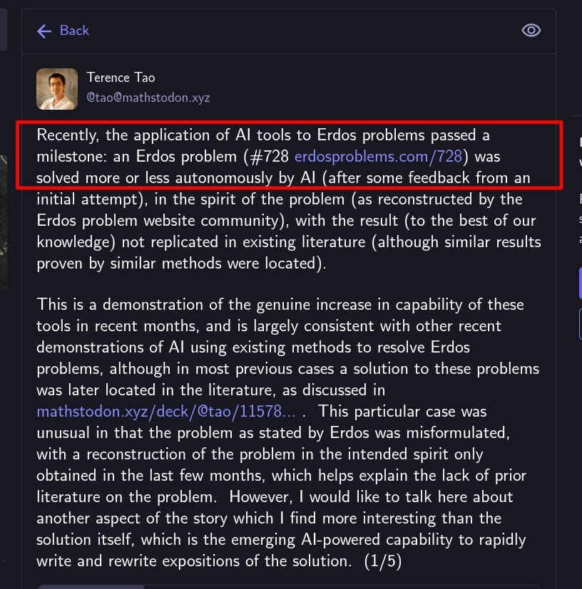 🛠️ Milestone achieved for AI on solving complex math problems - directly from Terence Tao