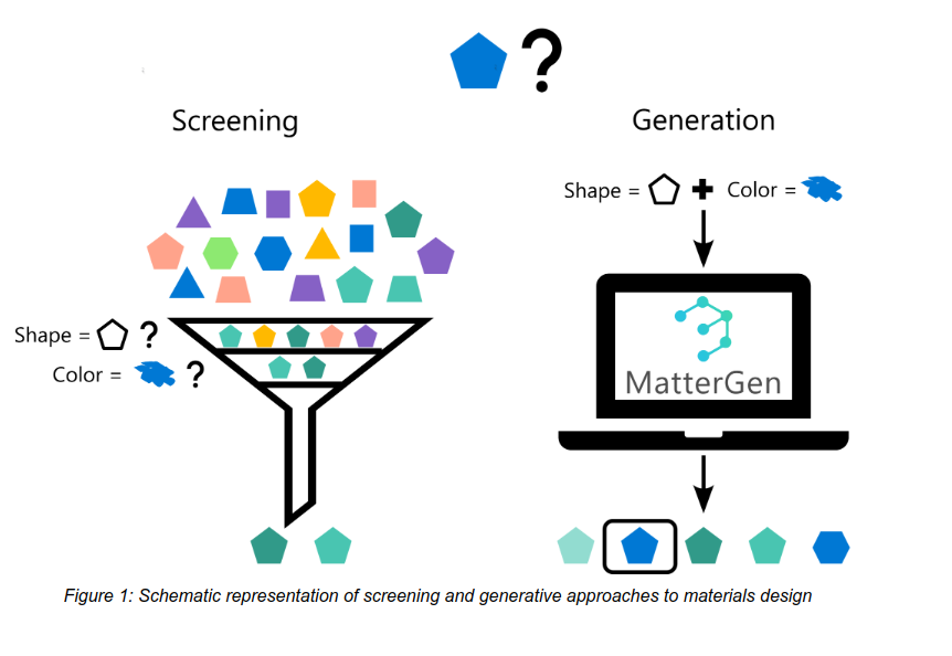 Microsoft Research introduced MatterGen, a generative AI tool designed to create novel materials directly from design prompts. This approach shifts from screening-based methods to property-guided material generation, enabling faster exploration of previously unknown materials. MatterGen demonstrates state-of-the-art performance, validated by experimental synthesis, and operates on a dataset of over 608,000 stable materials.