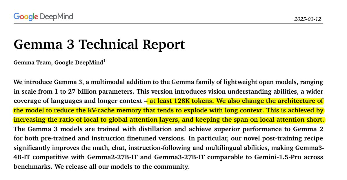 In a global-only design, every token in the entire sequence is stored for each layer. At 128k tokens, that’s enormous. By using mostly local layers, the memory overhead is drastically reduced. The occasional global layer is still expensive, but because there aren’t many of them, the total cost remains manageable.