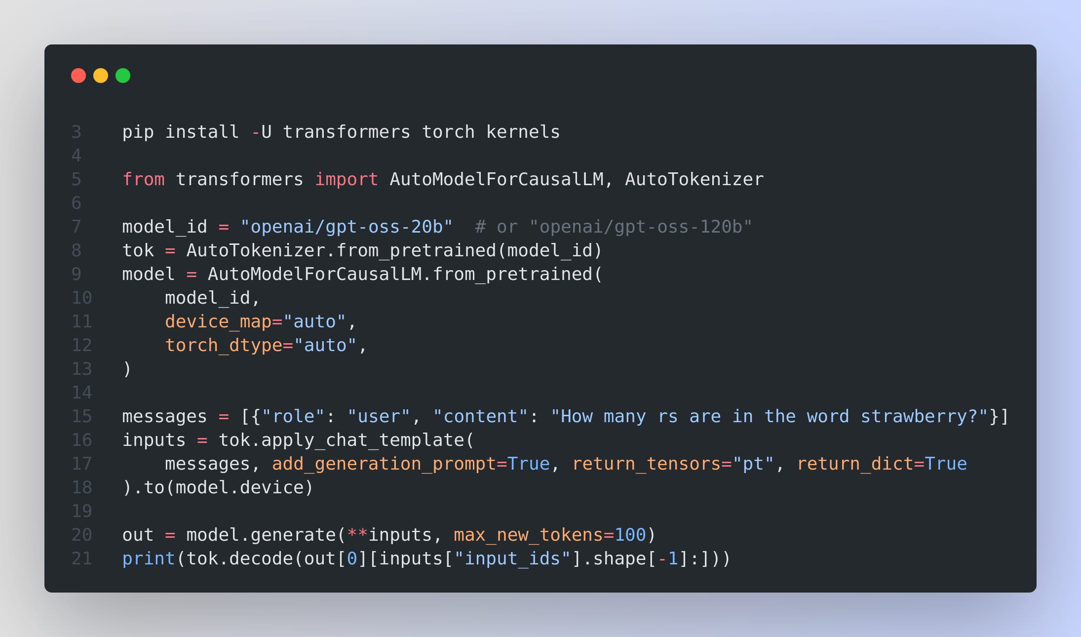 📡 Tutorial: Running gpt-oss, the new open-source model family from OpenAI with Huggingface transformer lib