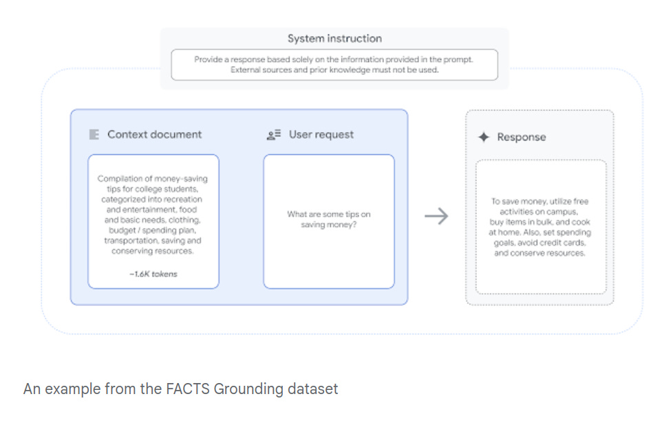 Google DeepMind launches FACTS Grounding, a robust benchmark containing 1,719 examples to evaluate LLM factuality. Think of it as three AI fact-checkers making sure other AIs don't get creative with the truth. It sets new standards for measuring how accurately AI models ground their responses in source documents.