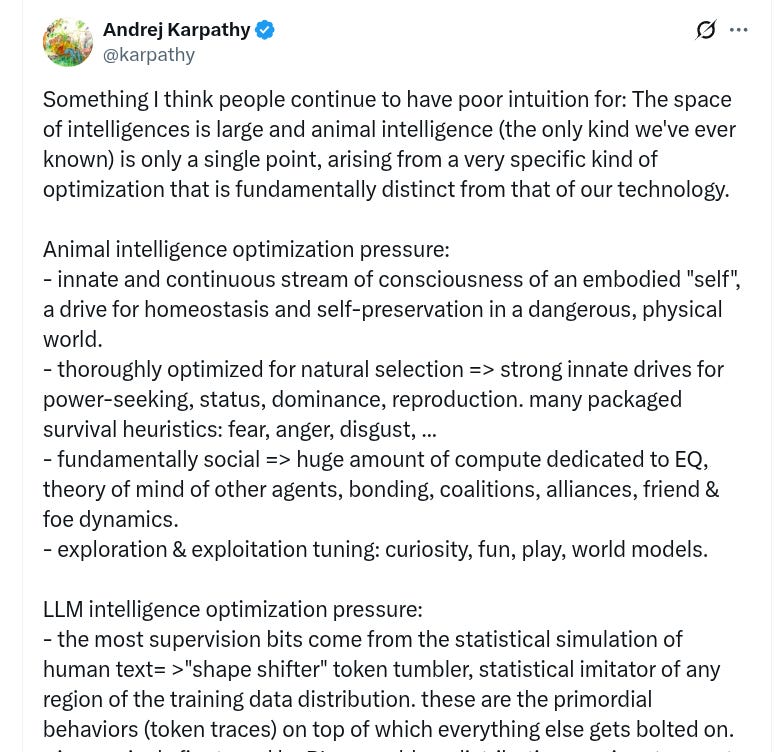 🛠️ Karpathy’s post on human vs LLM intelligence goes viral