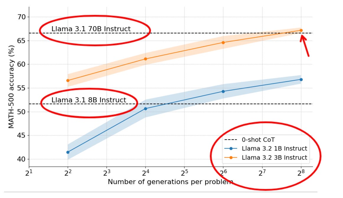 HuggingFace researchers successfully demonstrated that a 3B parameter Llama model can outperform its 70B counterpart on complex math problems through optimized test-time compute scaling and advanced search strategies, challenging conventional wisdom about model size requirements.
