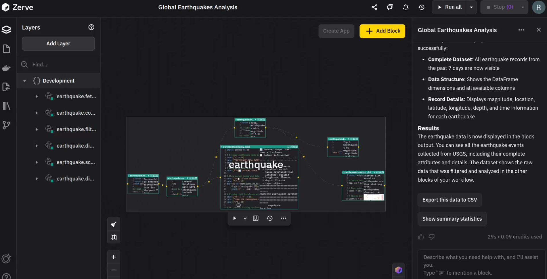 Zerve automatically pulls your code and datasets into context while creating workflows, making it far more powerful than the usual options.