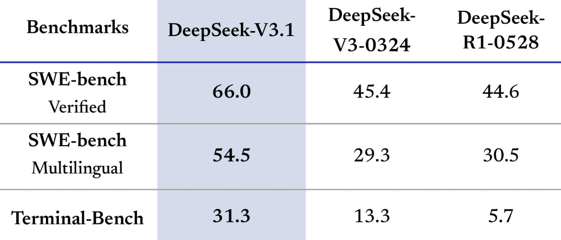 🏆 Deepseek's released V3.1, the first hybrid model that outperforms its R1 reasoning model on benchmarks