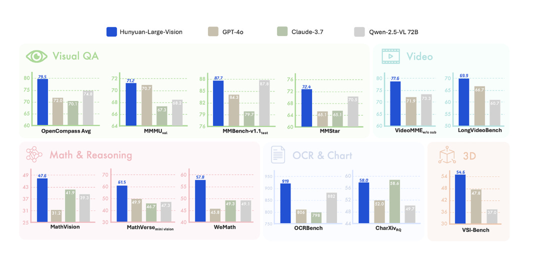 The core highlight of Hunyuan Large-Vision lies in its powerful multimodal input support capability. The model not only supports image processing at any resolution, but also can process video and 3D space inputs, providing users with a comprehensive visual understanding experience. This technological breakthrough means that users can directly input various formats and sizes of visual content without complex preprocessing operations.