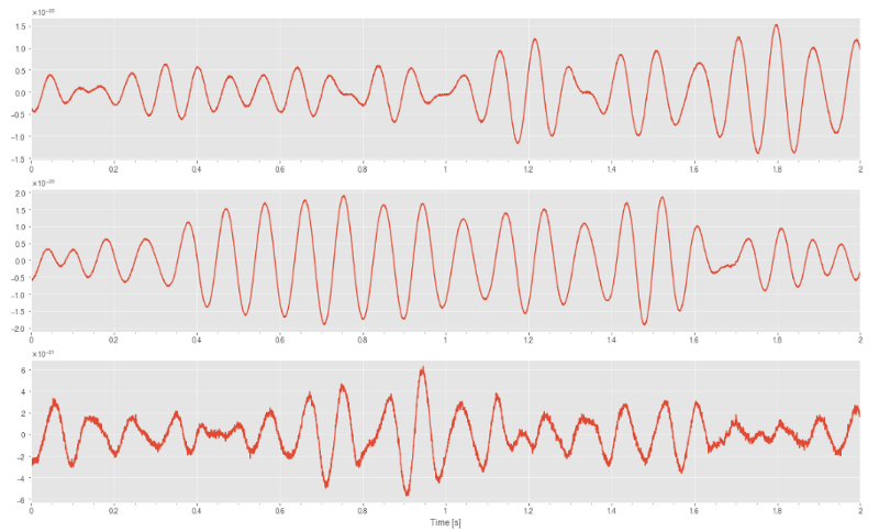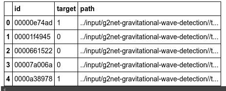 In this competition, you are provided with a training set of time series data containing simulated gravitational wave measurements from a network of 3 gravitational wave interferometers (LIGO Hanford, LIGO Livingston, and Virgo). Each time series contains either detector noise or detector noise plus a simulated gravitational wave signal. The task is to identify when a signal is present in the data (target=1).