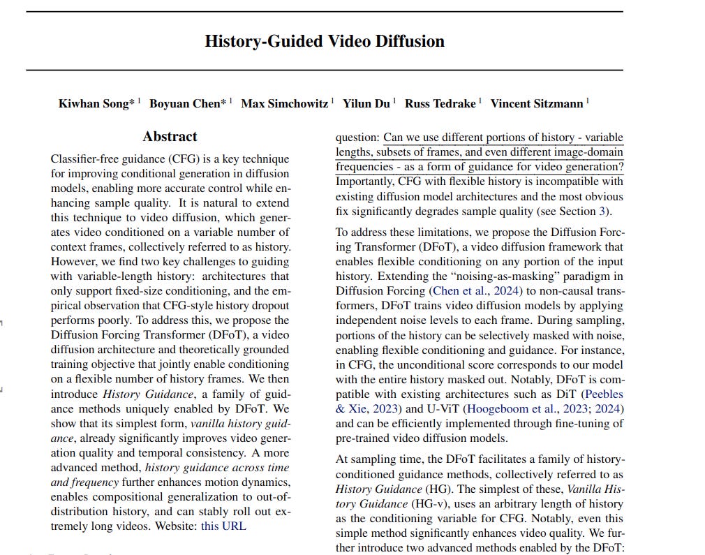 📌 DFoT is practically advantageous due to its architectural compatibility. Existing video diffusion models can be fine-tuned into DFoT, readily adopting History Guidance without major modifications.
