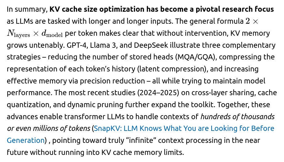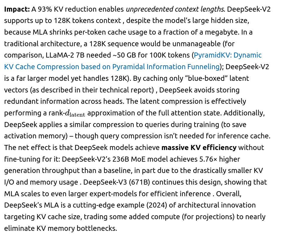 References: The analysis above cites key papers from 2024–2025 that substantiate these points, including arXiv preprints on Cross-Layer Attention (HERE), KV cache quantization (KVQuant: Towards 10 Million Context Length LLM Inference with KV Cache Quantization), the DeepSeek technical reports ( DeepSeek-V2: A Strong, Economical, and Efficient Mixture-of-Experts Language Model), and cache compression techniques like SnapKV .