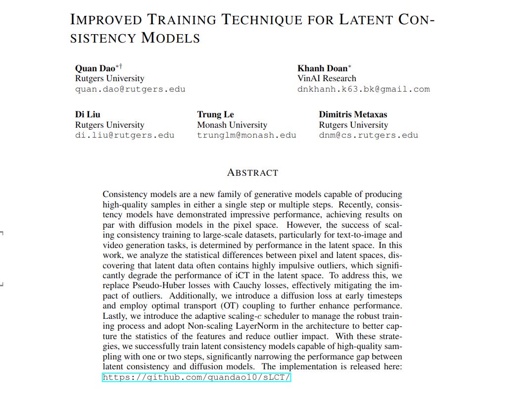 This paper proposes enhancements to latent consistency training to bridge the performance gap with latent diffusion models.