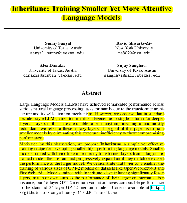 • Inheritune: Initialize smaller model with early layers from larger pre-trained model