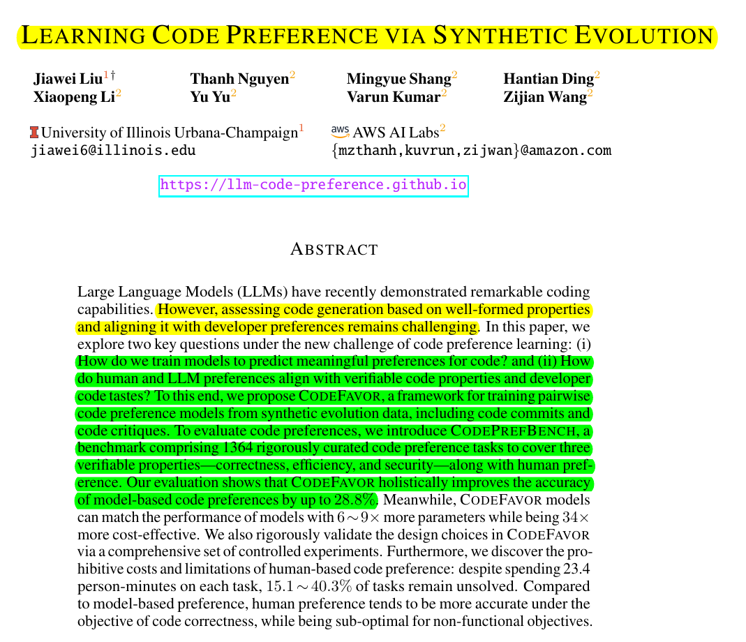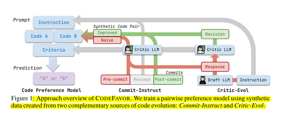 • CODEFAVOR framework trains pairwise code preference models using synthetic evolution data