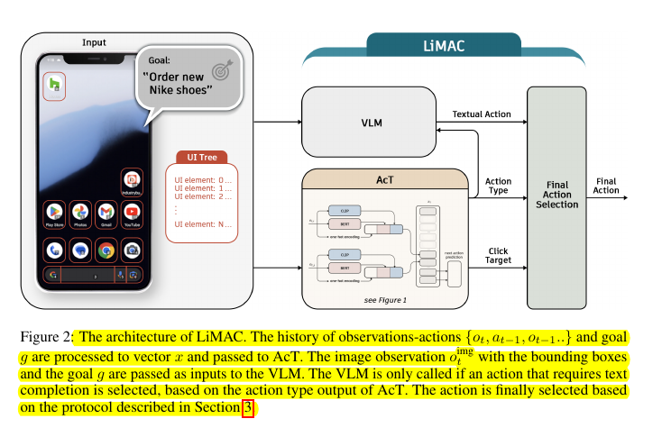 🔍 LiMAC uses a gated architecture, to achieve computational efficiency, where most actions are handled by a compact model (~500M parameters).