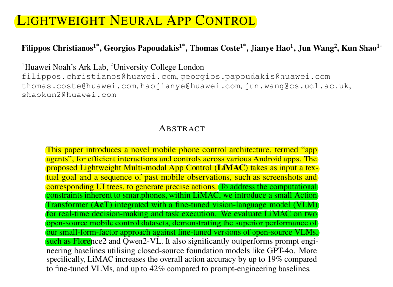 • Introduces LiMAC (Lightweight Multi-modal App Control) framework combining: