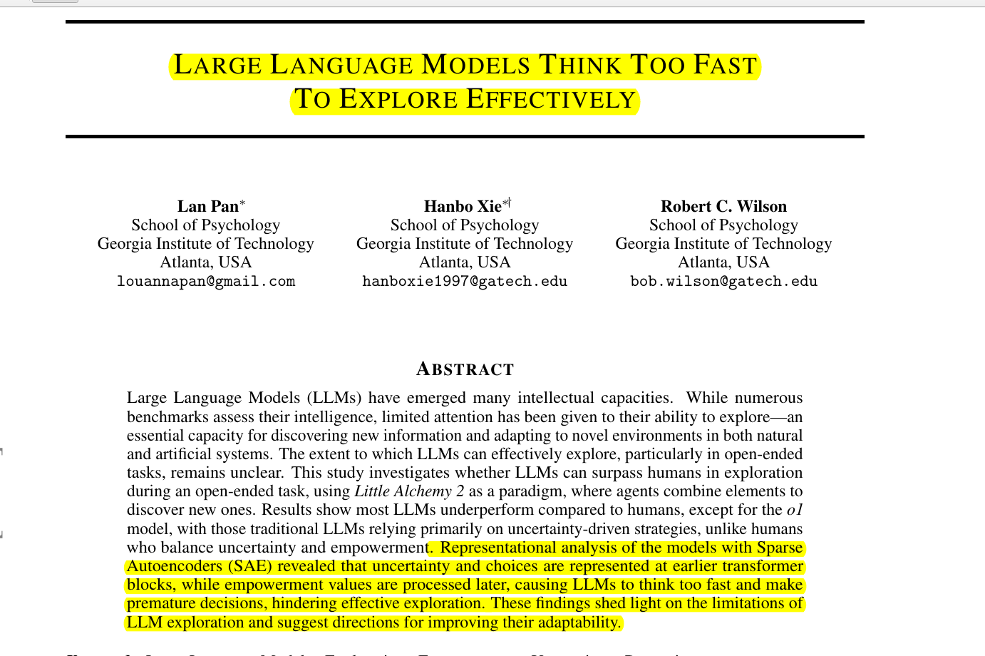 📌 Sparse Autoencoders (SAE) effectively dissect LLM internal representations. This reveals a critical flaw: LLMs prioritize uncertainty processing in early layers, causing premature decisions before considering empowerment.