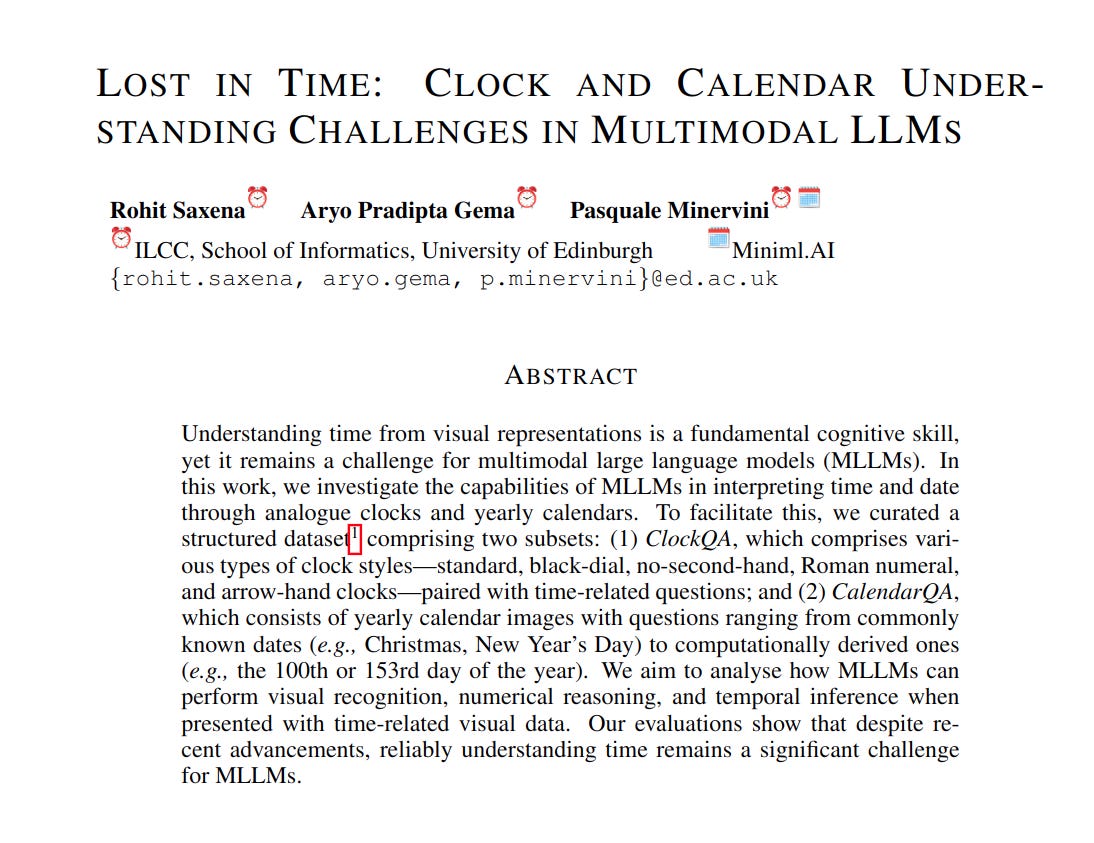 📌 The paper's zero-shot evaluation reveals a critical gap. MLLMs struggle with basic time interpretation from images despite strong language and vision capabilities in isolation. This highlights multimodal integration challenges.