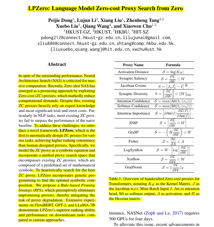 • LPZero: A framework for automatic Zero-cost (ZC) proxy design