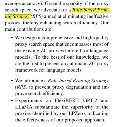 • Rule-based Pruning Strategy (RPS) to eliminate unpromising proxies