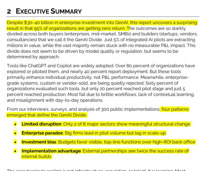 🌐 The original MIT report that said 95% of AI pilots fail and which spooked investors across US Stockmarket.