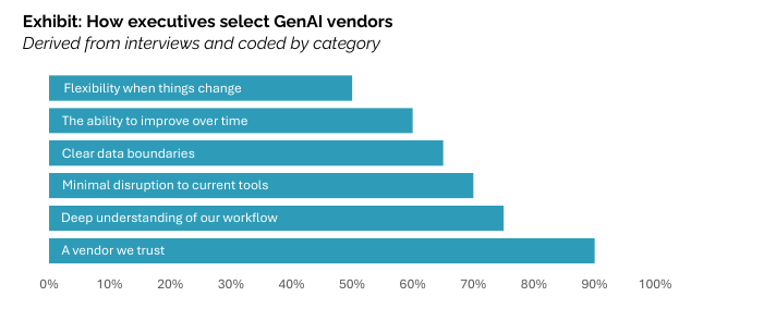The vendors that cross the divide focus on narrow, high-value workflows, integrate deeply, and ship learning loops that 66% of executives explicitly want alongside context retention that 63% demand.