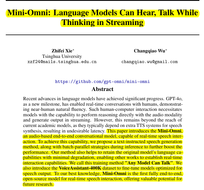 "Any Model Can Talk" - Mini-Omni First open-source end-to-end multimodal model with audio input/output