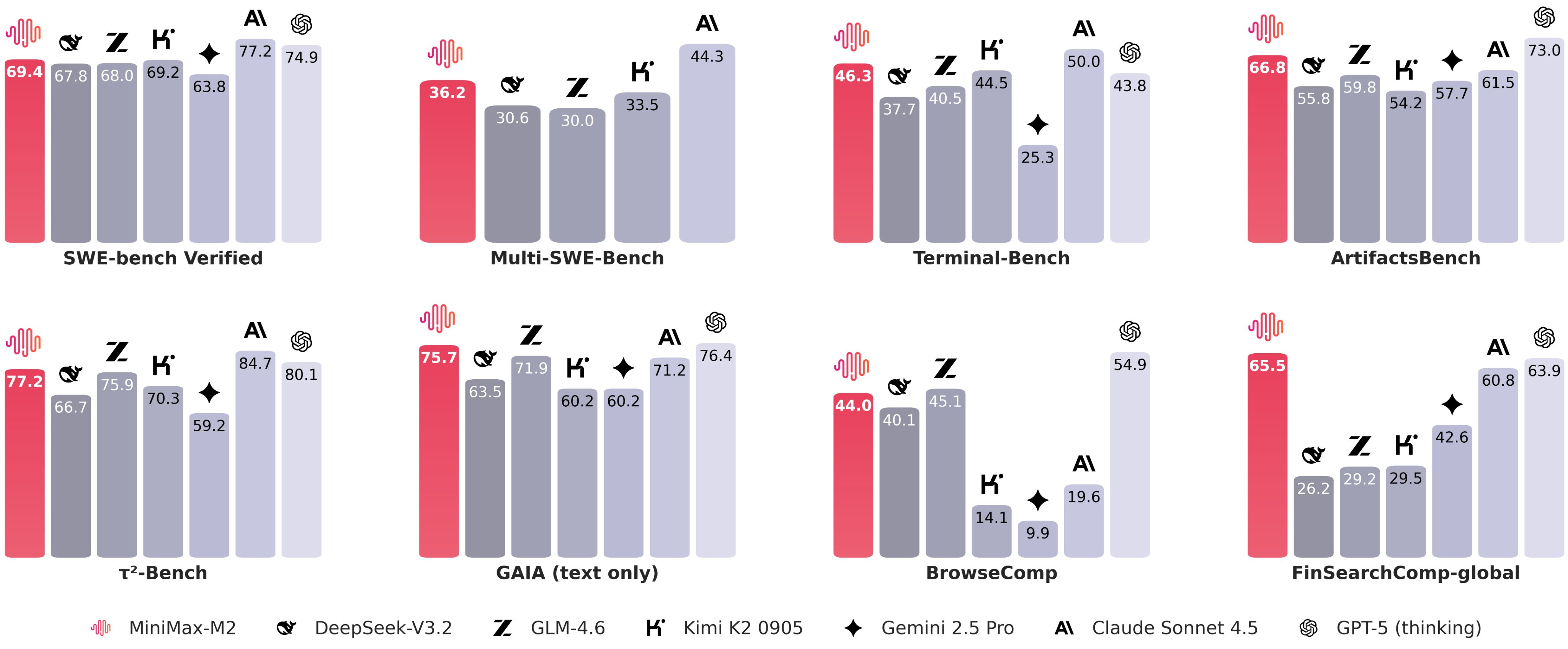 Minimax M2 Ranked #2 globally on Xbench-DeepSearch (right after GPT-5) and #2 on FinSearchComp-Global (just behind Grok-4). M2 is purpose-built for multi-hop, domain-specific, and retrieval-heavy reasoning.