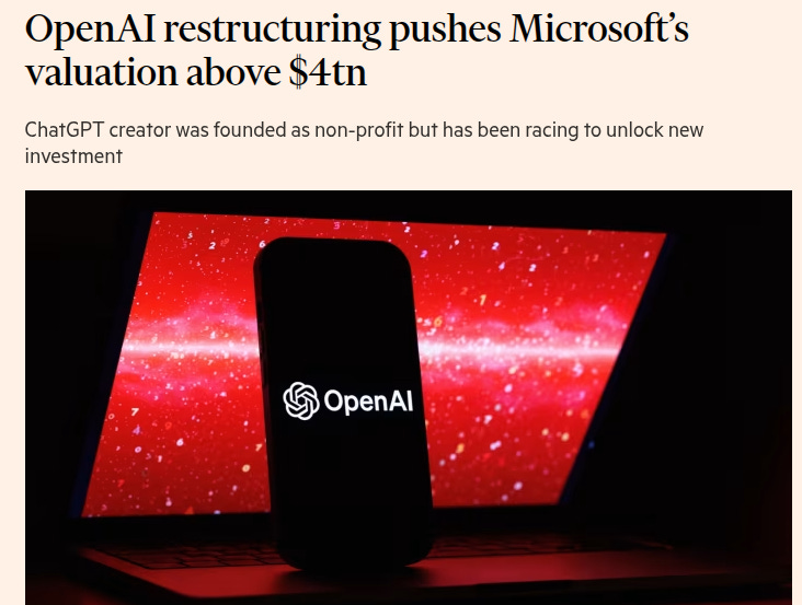 🤝 OpenAI Completes For-Profit Transition, Pushing Microsoft Above $4 Trillion Valuation.