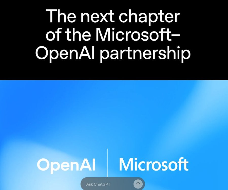 Signed a new deal that keeps Microsoft as the exclusive cloud and API partner until an independent panel verifies OpenAI’s claim of AGI, while locking in Microsoft’s rights to OpenAI’s products and models through 2032. Microsoft now owns 27% of OpenAI Group PBC, a stake valued around $135B, which cements tight integration of OpenAI tech into Microsoft products while OpenAI gains more flexibility on partnerships.