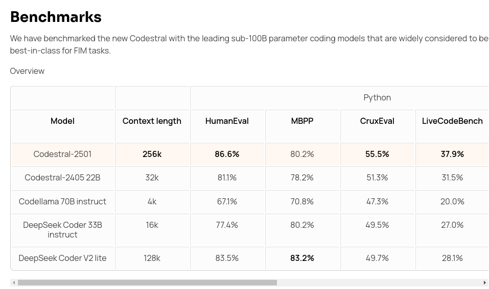 🏆 Mistral AI launches Codestral 25.01 with 2x speed and a 95.3% FIM pass@1 score