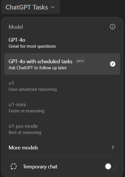 → Tasks do not yet support Advanced Voice Mode and are currently unavailable in the mobile app.