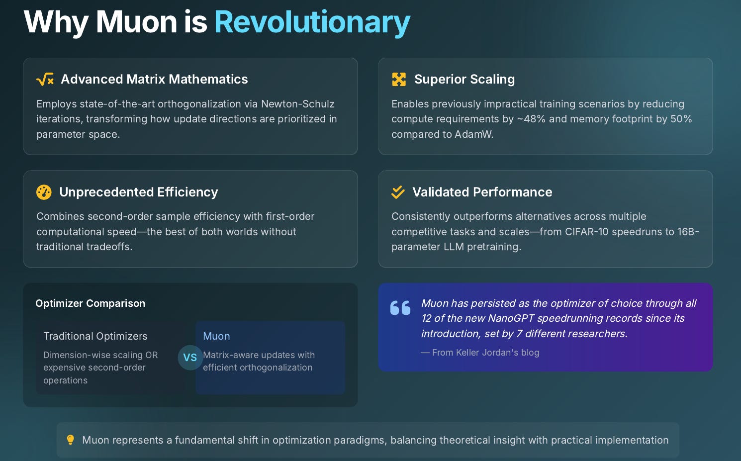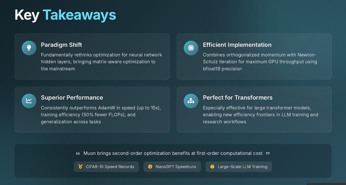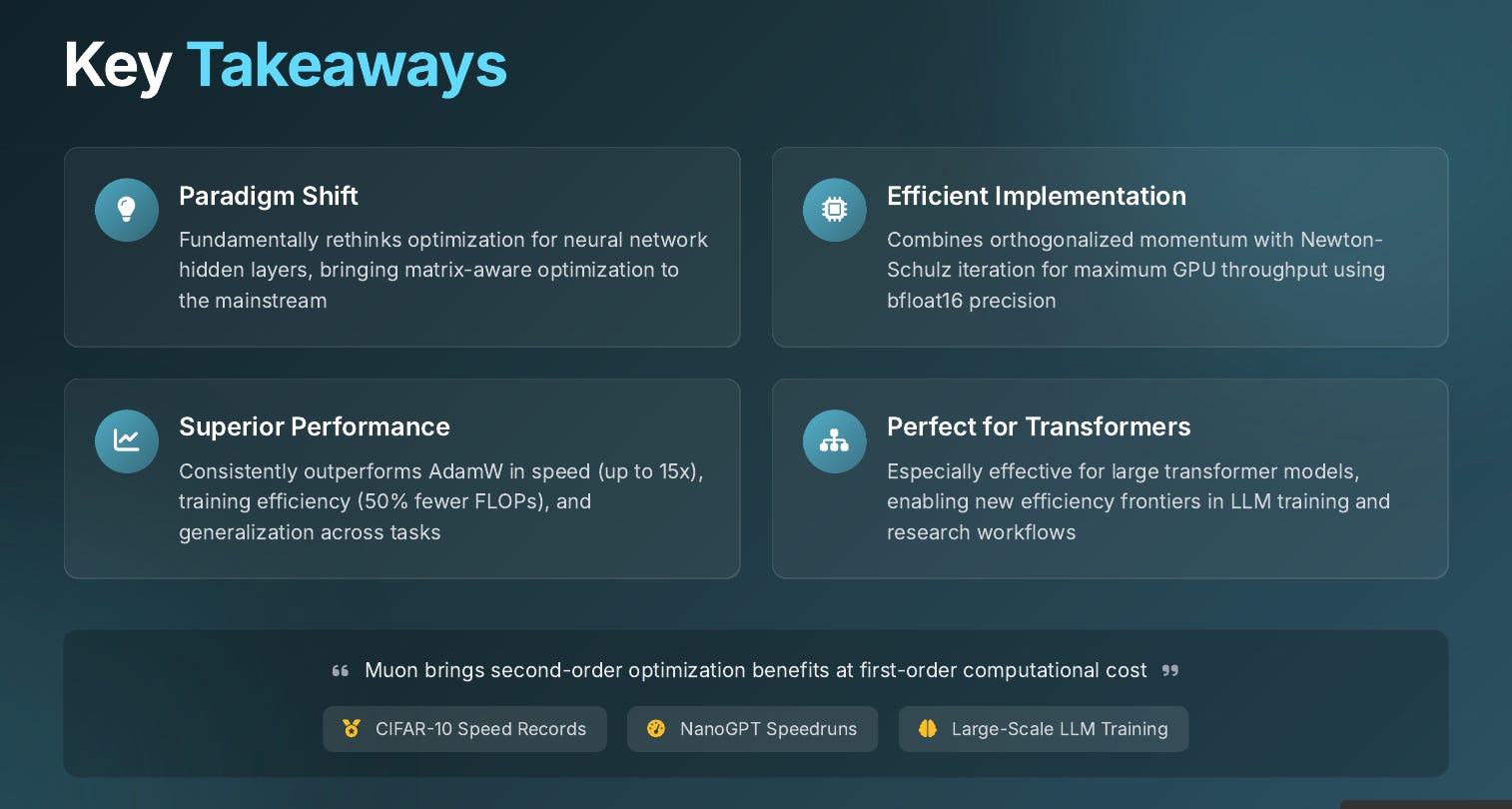 🧑🎓 Deep Dive: Understanding Muon optimizer. Training heavy transformers finishes sooner because gradients stop looping on same axes.