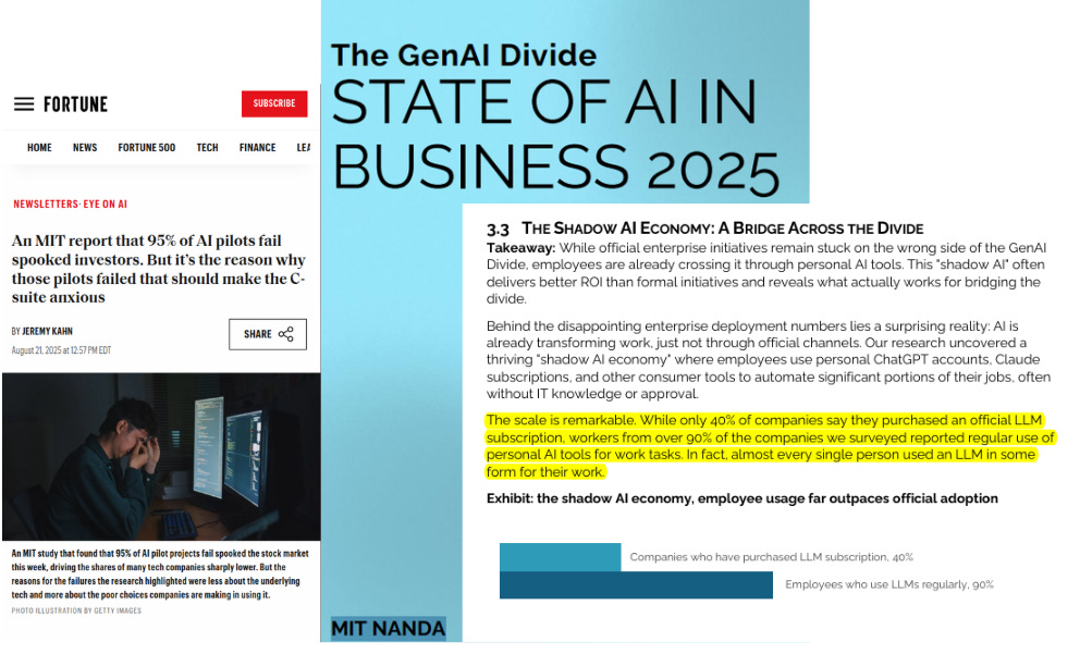 In other words, the report counted slow, brittle projects inside procurement pipelines, and it missed the unofficial work that actually gets done. And , these bespoke corporate AI-pilots fails because they do not remember context, do not adapt to feedback, and require heavy setup every time, so users quietly avoid them.
