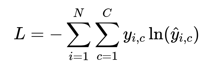 Here, N is the number of samples, C is the number of classes (letters, digits), y_{i,c} is the true label for sample i and class c, and \hat{y}_{i,c} is the predicted probability.