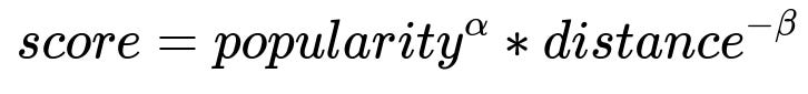r["score"] = calculate_score(r["popularity"], r["distance"], alpha, beta)