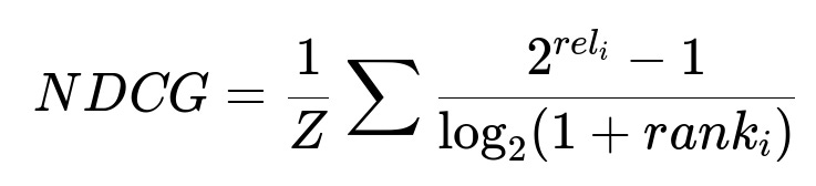 rel_i is the relevance of the restaurant at position i in the list (1 if ordered, 0 otherwise in this scenario).