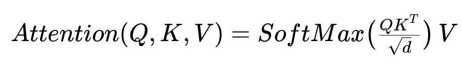 Here, Q stands for queries, K for keys, V for values, and d is the dimension of these vectors. Q, K, and V derive from the input embeddings. The SoftMax output yields attention weights that emphasize or de-emphasize words in relation to each query.