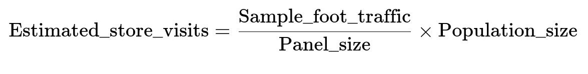 Data is non-normalized and drawn from a fluctuating mobile phone panel. A normalization strategy involves dividing the observed foot traffic by the sampleâs panel size and then scaling it by the relevant population. For each store, the ratio of observed visits to the panel size can be multiplied by the real-world population for that geographical area.