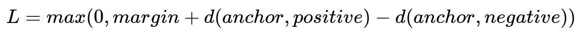 d(anchor, positive) is the distance between the anchor and positive embeddings in plain text format d(a, p).