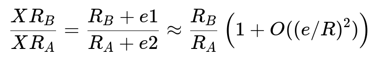 e1, e2, and e represent the approximate differences between actual revenue and predicted XR. The offset corrections keep e small.
