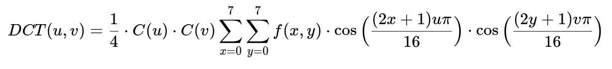 DCT(u,v) is the transform coefficient at frequencies u, v.