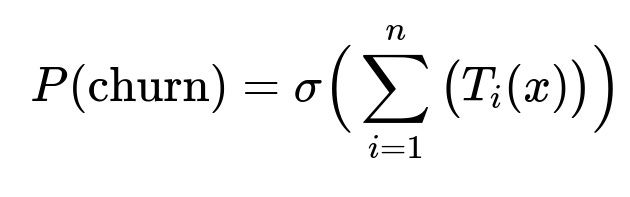 sigma(...) is the logistic function that converts the sum of the tree outputs into a probability.